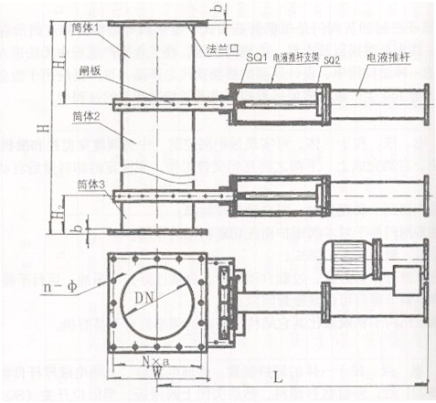 电液动金属硬密封卸灰阀门示意图
