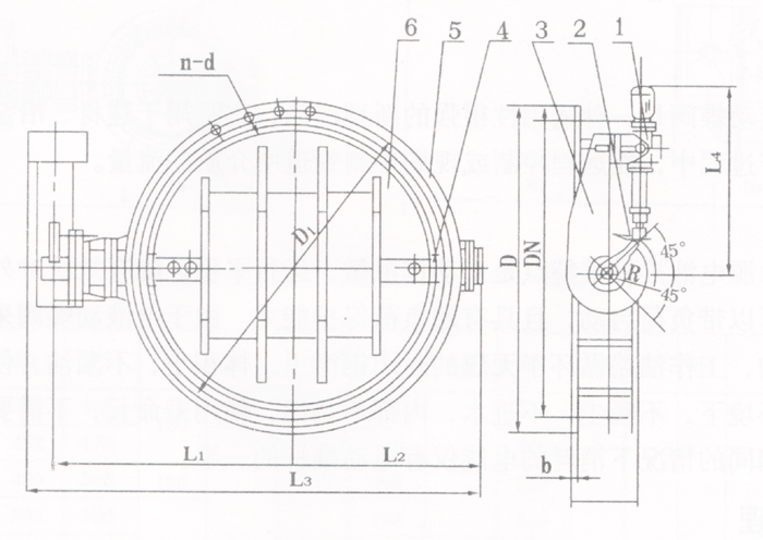 电液动蝶阀以电液推杆作动力源,通过双向齿轮泵轮出压力油,经油路集成块的控制送至油缸,实现活塞杆往复运动,同时通过曲柄转动阀轴、阀